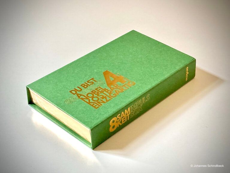 Sie will Menschen wieder zusammenbringen. Sie lädt dazu ein, nachzudenken – über den anderen, über sich selbst. Zum Beispiel: Welche Worte könnten ihn berühren? Was könnte sie inspirieren, über sich hinauszuwachsen? Diese Impulsbox will nicht belehren, sondern inspirieren. Die Impulse darin sind keine Wahrheiten, sondern Wegweiser. Sie wollen Türen öffnen – zu mehr Glück, Selbstreflexion, zu einem Leben mit mehr Tiefe und Freude.